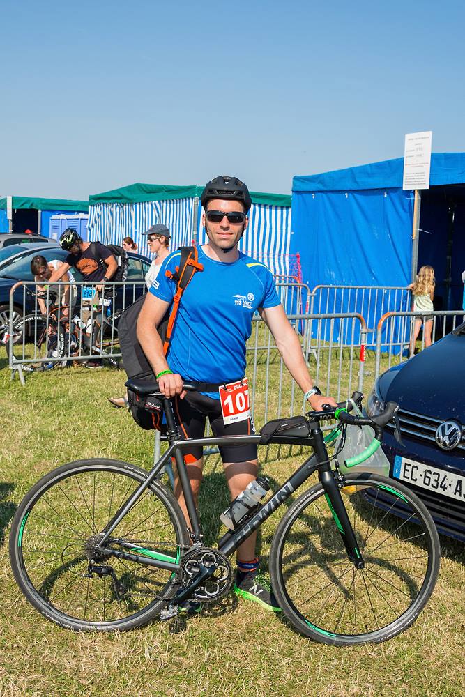 Dimanche, nous passons aux choses sérieuses, enfin, surtout Ludo ! Le duathlon 111 part à…12h, en même temps que le half (113). Les Cht’rimen du 226 sont au turbin depuis 7h du mat, eux. Un coup d’oeil à la météo, toujours caniculaire et avec encore moins de vent, annonce une journée compliquée. La chaleur va être l’ennemi à gérer, encore plus avec un départ quand le soleil est au zénith…