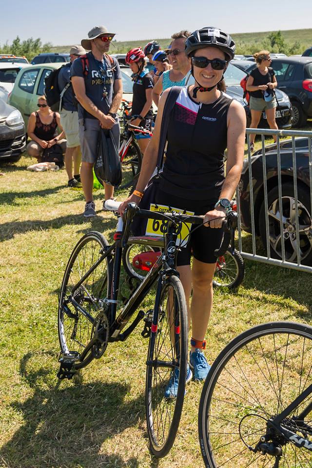 On regarde les garçons du S, le plan d’eau à vraiment l’air top. Ludo est à deux doigts de piquer un dossard pour nager dans l’eau fraîche et aller jouer sur le parcours qui est hyper roulant. On encourage les concurrents avant d’aller chercher mes affaires pour le XS, qui part à 17h. Je serai avec les minimes, fun. Certaines ont des vélos déjà trop grand pour moi. Pas fun.